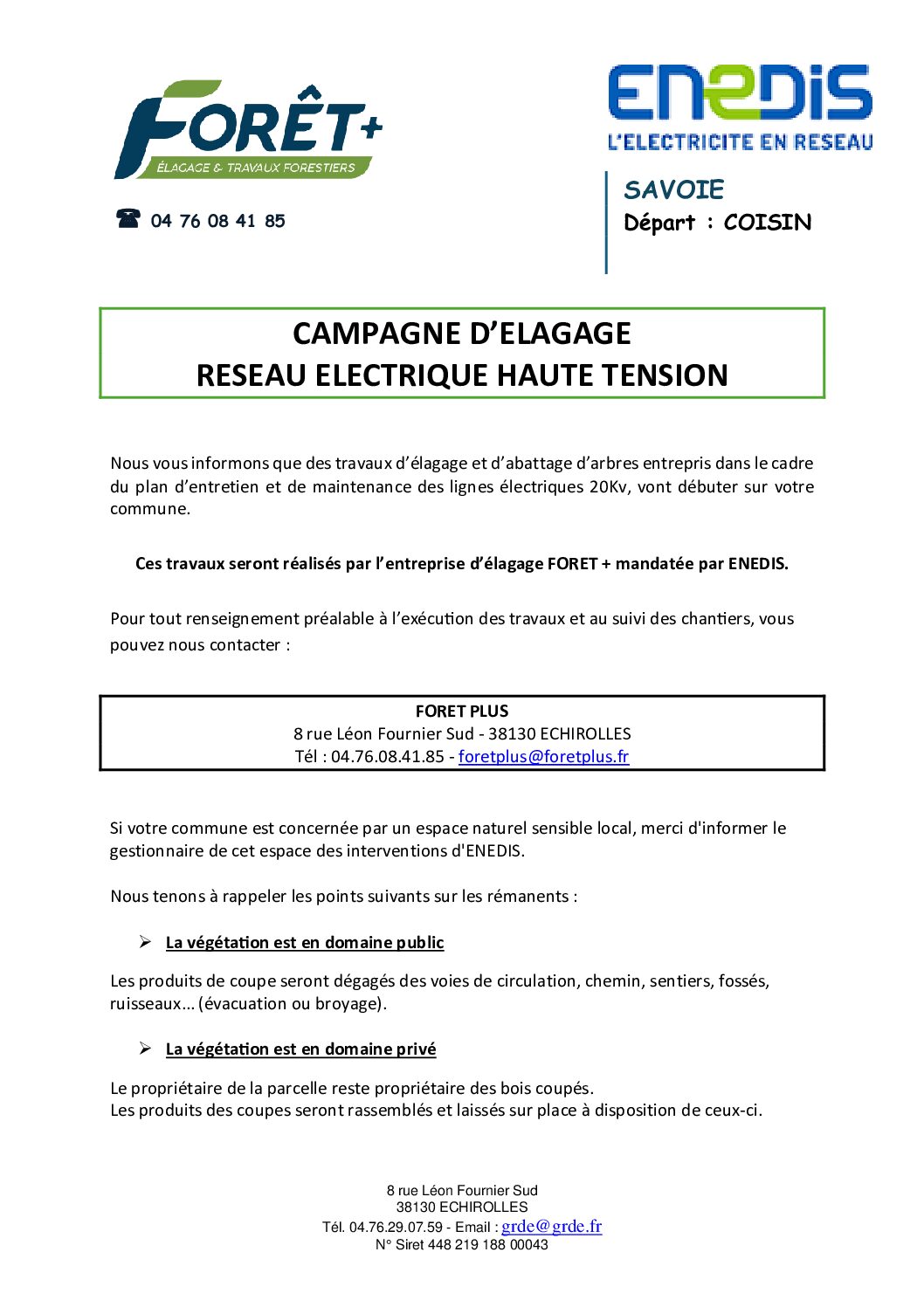 CAMPAGNE D’ÉLAGAGE RÉSEAU ÉLECTRIQUE HAUTE TENSION